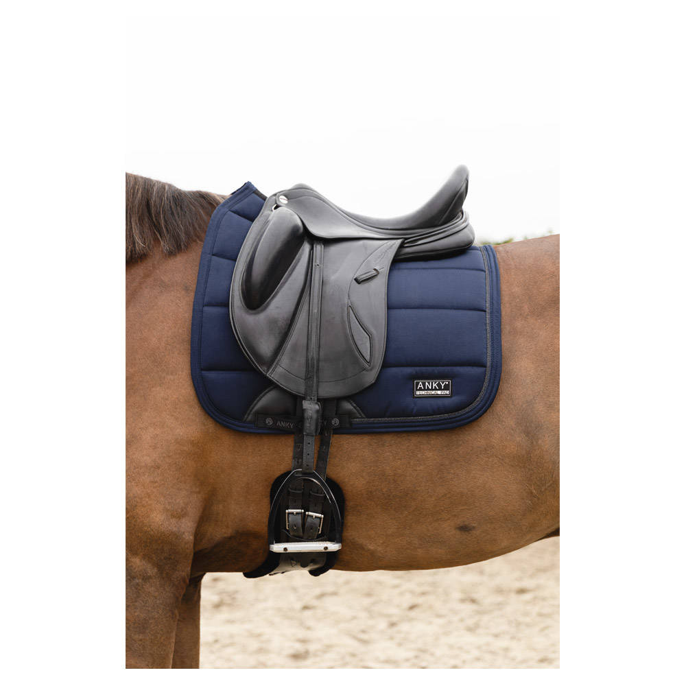 Antypoślizgowe litery na boku oraz podwójna pętla przy popręgu zapewniają stabilną pozycję siodła.