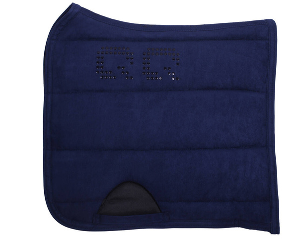 Pad ujeżdżeniowy z silikonowym nadrukiem Q-print na górze, który zapobiega przesuwaniu się podczas jazdy.