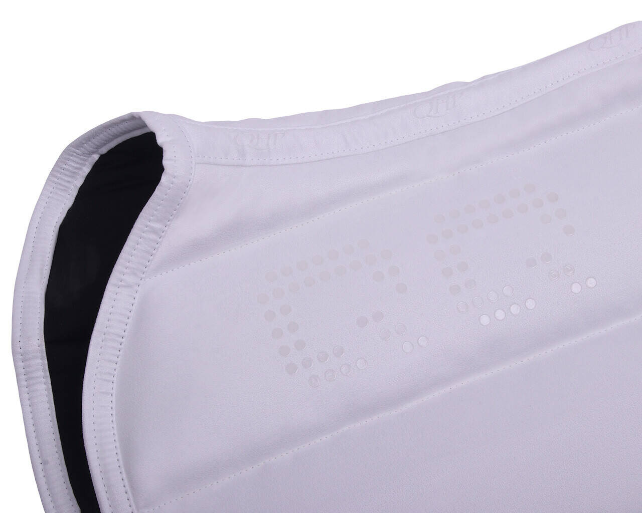 Pad ujeżdżeniowy z silikonowym nadrukiem Q-print na górze, który zapobiega przesuwaniu się podczas jazdy.