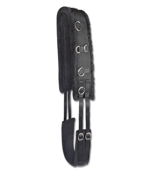 Pas do lonżowania wykonany z wytrzymałego polipropylenu, miękko podszyty polarem typu teddy.