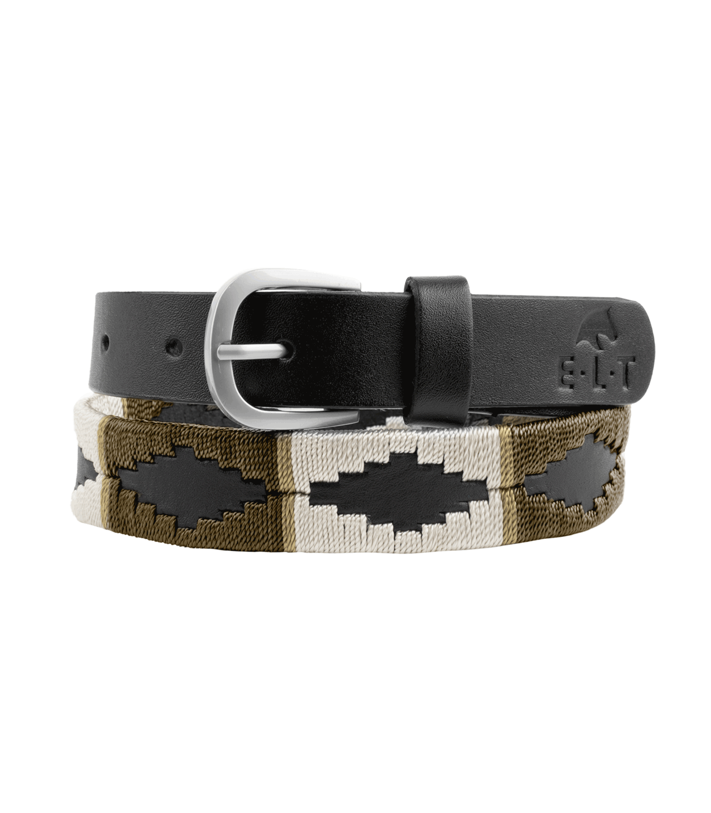 Wykonany z czarnej skóry, ma trójkolorowe przeszycia z nici.