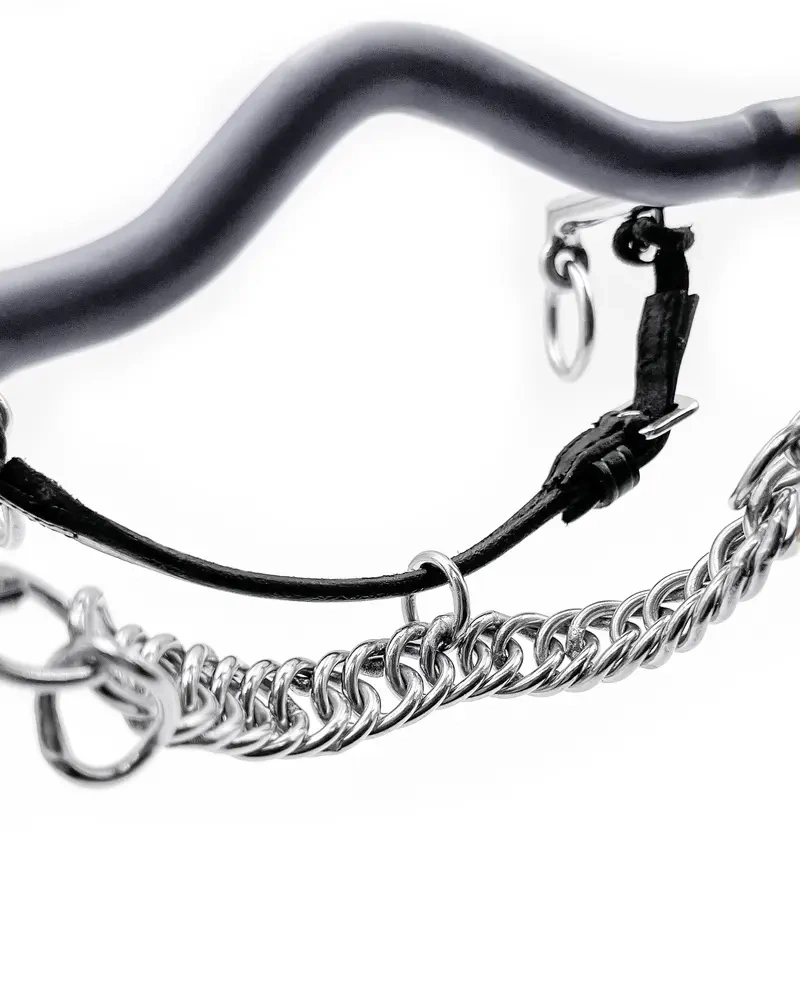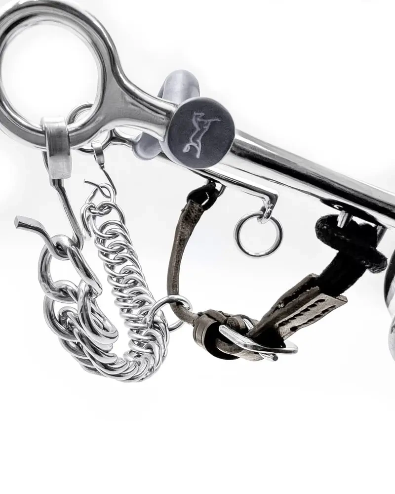 - Idealna alternatywa dla standardowych łańcuszków. Jego głównym zadaniem jest zapobieganie przekręcaniu się dolnych boków wędzidła oraz zwiększenie stabilizacji całego kiełzna w pysku konia.