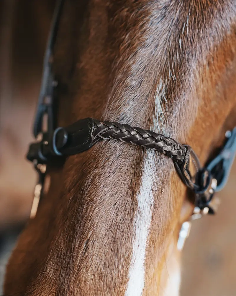 - Elegancki i funkcjonalny pasek do wędzidła typu hackamore lub tandem.
