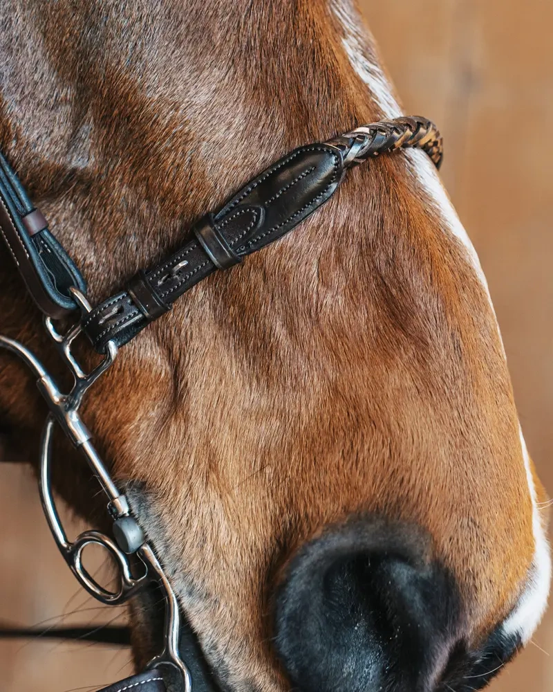 Elegancki i funkcjonalny pasek do wędzidła typu hackamore lub tandem.