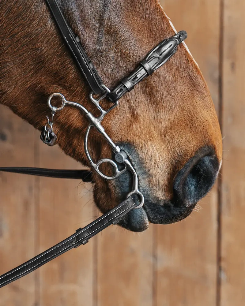 - Elegancki i funkcjonalny pasek do wędzidła typu hackamore lub tandem.