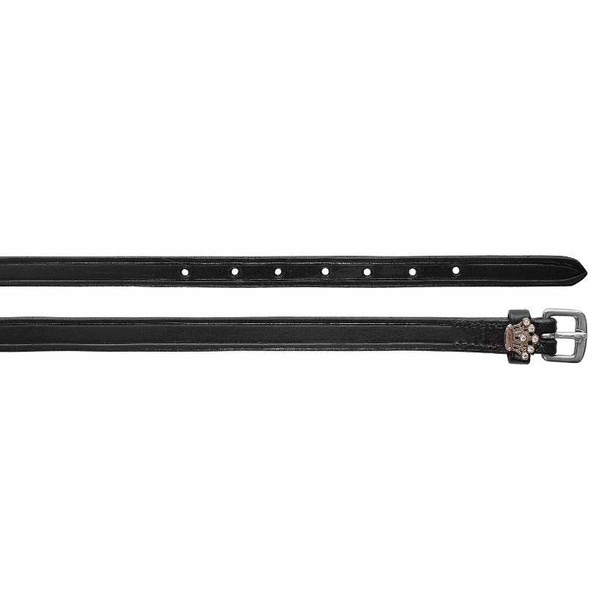 Paski do ostróg wykonane z wysokiej jako sci skóry. Przy zapięciu ozdobione metalową koroną z cyrkoniami.
