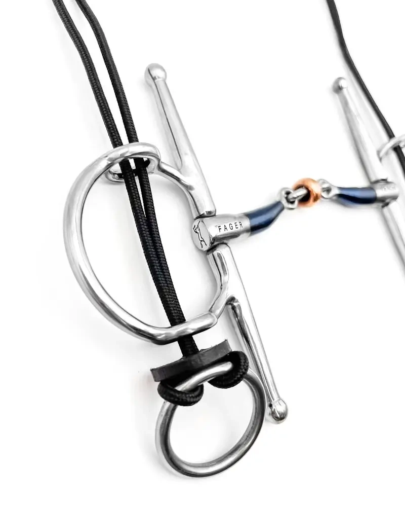 Producent zaleca stosowanie dwóch wodzy – jedna przypięta do pasków, a druga do zwykłego pierścienia wędzidła. Taki układ pozwala na elastyczne zarządzanie siłą działania i umożliwia wybór odpowiedniego sygnału w zależności od sytuacji. Dzięki temu jeździec może stosować działanie gag tylko wtedy, gdy jest to naprawdę potrzebne, a w pozostałym czasie zachować delikatny, neutralny kontakt.
