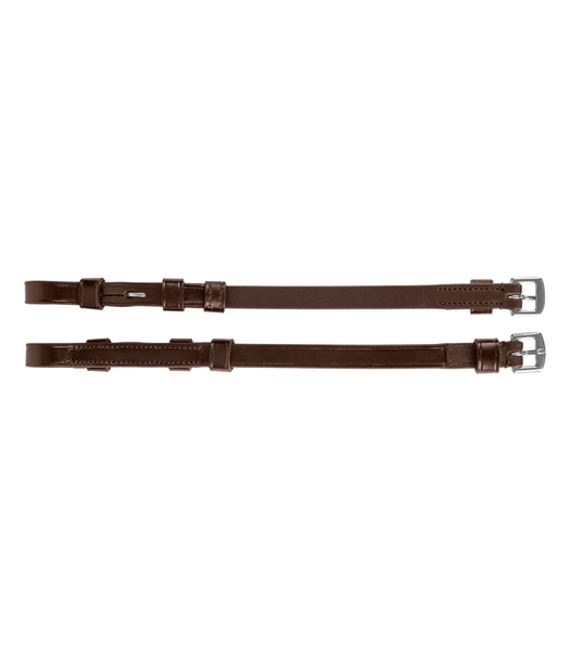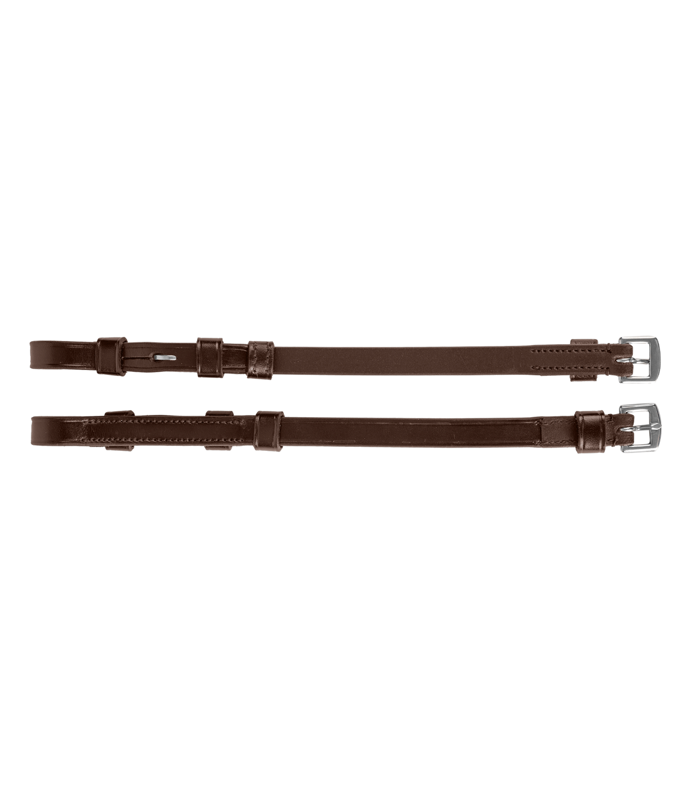 Paski policzkowe z kwadratowymi sprzączkami, zapinane na haczyki.