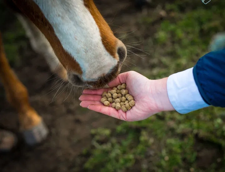 Paszę treściwą należy dzielić na kilka mniejszych porcji dziennie (minimum 2–3), najlepiej podawanych po uprzednim podaniu paszy objętościowej. Pomaga to utrzymać stabilność poziomu cukru we krwi, poprawia strawność i zmniejsza ryzyko kolek.