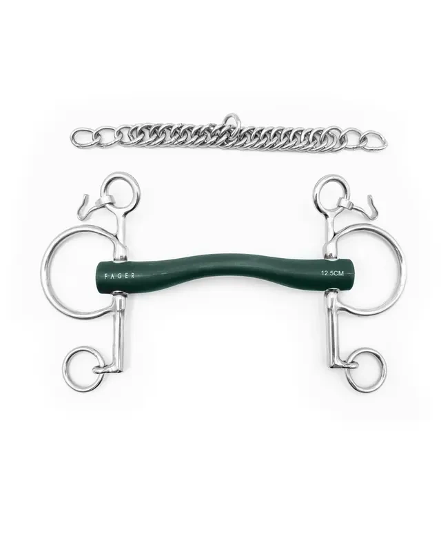 Fager Andrea to wędzidło zaprojektowane z myślą o koniach wymagających delikatniejszego, bardziej stabilnego kontaktu z ręką jeźdźca. Wykonane z nowoczesnej, elastycznej gumy TPU, łączy miękkość, elastyczność i trwałość, dzięki czemu doskonale sprawdza się zarówno w treningu młodych koni, jak i u wrażliwych koni, które źle reagują na tradycyjne, metalowe kiełzna.