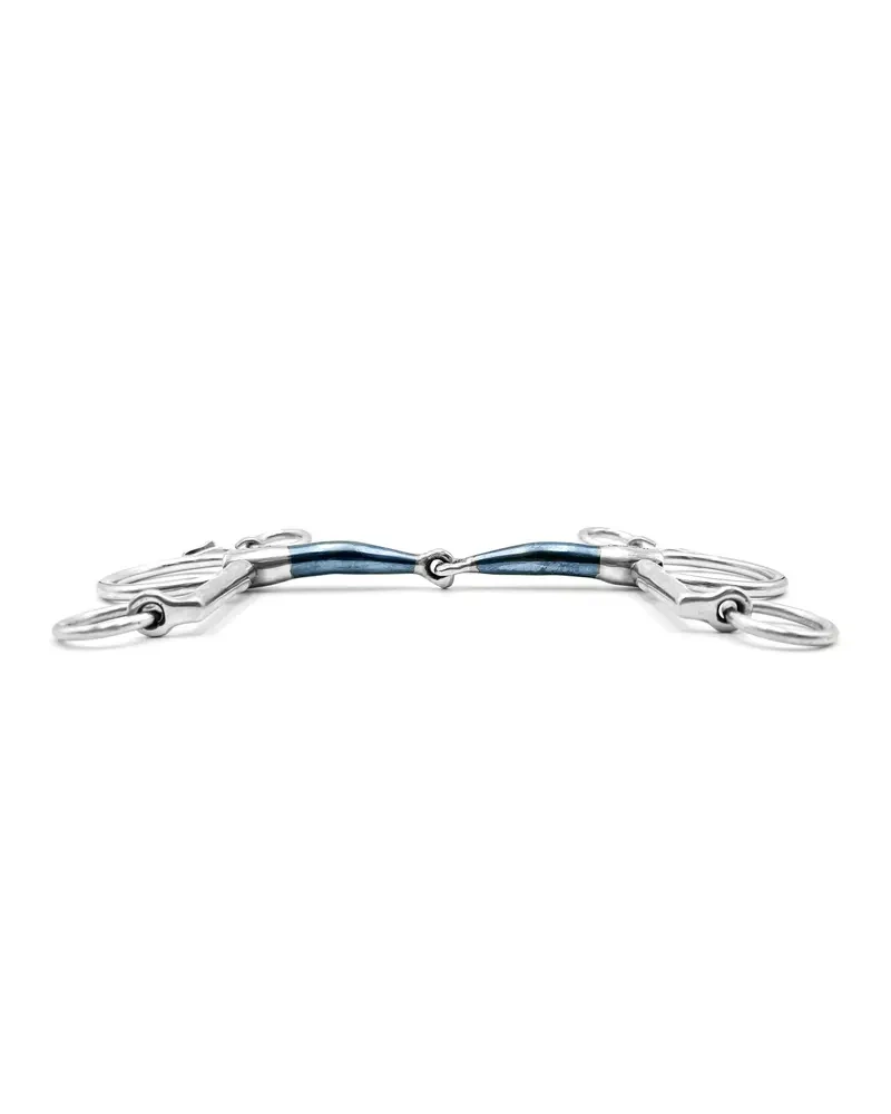 Sweet Iron (oksydowane żelazo) to materiał, który w trakcie użytkowania ulega naturalnemu procesowi utleniania, tworząc powierzchnię o specyficznym, „słodkim” smaku. Ten smak znacząco zwiększa wydzielanie śliny i zachęca konie do aktywnego poszukiwania kontaktu z ręką jeźdźca.