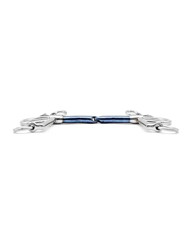 Sweet Iron (oksydowane żelazo) to materiał, który w trakcie użytkowania ulega naturalnemu procesowi utleniania, tworząc powierzchnię o specyficznym, „słodkim” smaku. Ten smak znacząco zwiększa wydzielanie śliny i zachęca konie do aktywnego poszukiwania kontaktu z ręką jeźdźca.