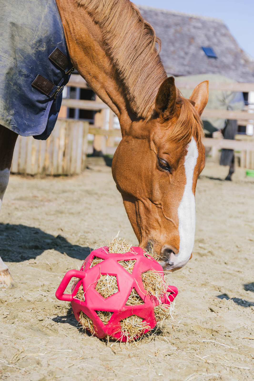 Wskazówka od LOFT HR: jeśli Twój koń szybko traci zainteresowanie zabawkami, spróbuj rotować piłkę co kilka dni – raz do boksu, raz na padok lub do transportu. Zmiana środowiska sprawia, że przedmiot znów staje się atrakcyjny i pobudza ciekawość zwierzęcia. Dodatkowo warto raz na jakiś czas włożyć do środka siano o innej strukturze lub zapachu, np. z dodatkiem suszonych ziół lub uzupełnić ją marchewkami czy jabłkami.