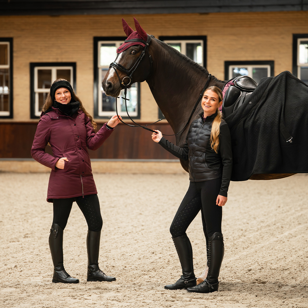 - Płaszcz , który skutecznie chroni przed deszczem i śniegiem, a jednocześnie odprowadza wilgoć, co pozwala utrzymać komfort cieplny nawet podczas intensywnej aktywności w siodle czy pracy w stajni.