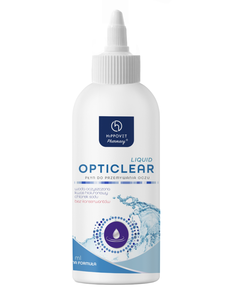 • Opti Clear to preparat pielęgnacyjny, który skutecznie usuwa zanieczyszczenia i wydzieliny z okolic oczu. Dzięki wysokiej zawartości niskocząsteczkowego kwasu hialuronowego łagodzi podrażnienia spojówek oraz ułatwia naturalne nawilżenie oczu i powiek.