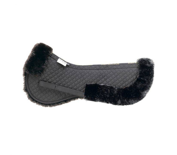 Podkładka z prawdziwego owczego futra jest odporna na odkształcenia, pozwalając równomiernie rozłożyć nacisk na grzbiet konia.