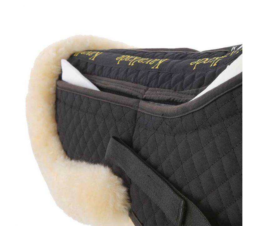 - Wykonana z wysokiej jakości owczego futra medycznego. Ma 2 kieszenie na wkładki korygujące ułożenie siodła.