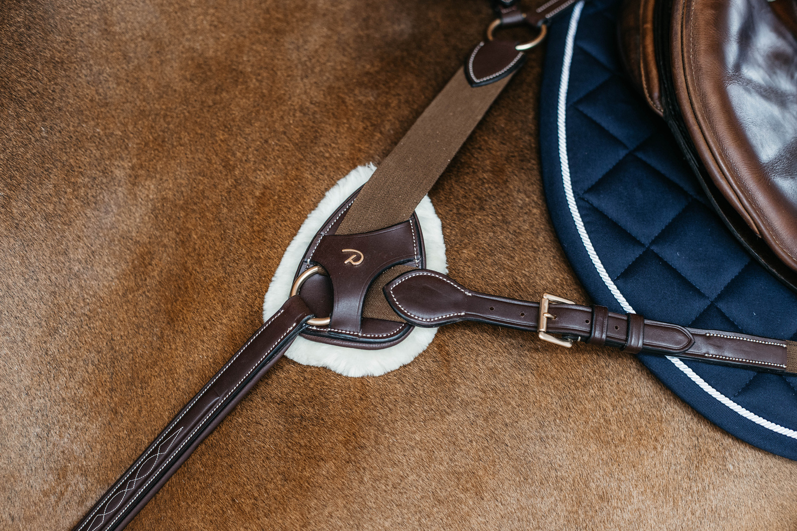 - Podkładka ochronna do napierśnika 5-punktowego poprawia komfort konia i zapewnia odpowiednie ułożenie sprzętu podczas jazdy.