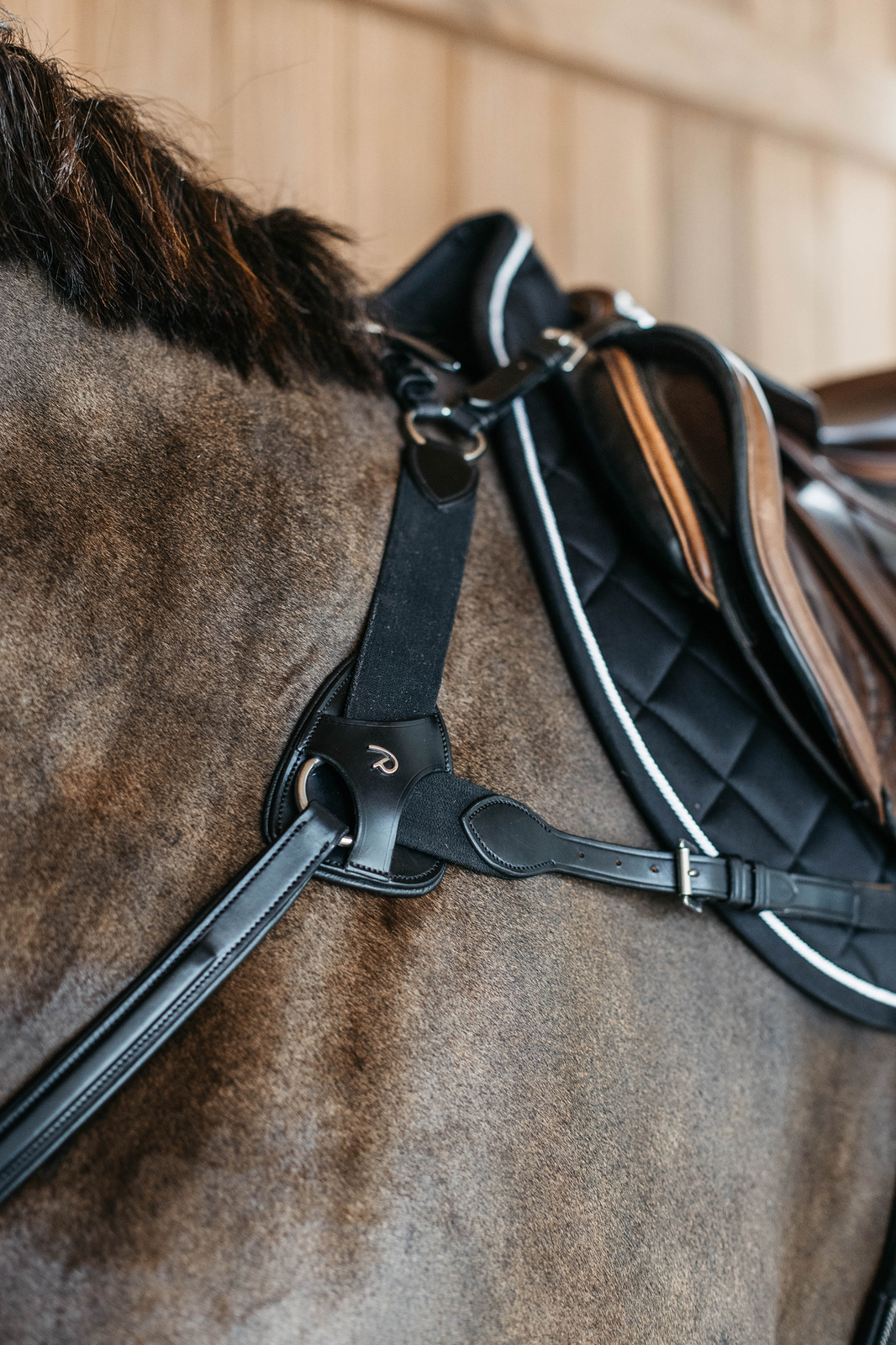 Podkładka do napierśnika 5-punktowego poprawia komfort konia i zapewnia odpowiednie ułożenie sprzętu podczas jazdy.
