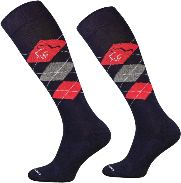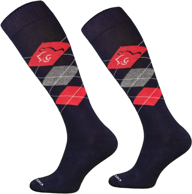 Podkolanówki jeździeckie w klasyczne wzór kolorowych rombów.