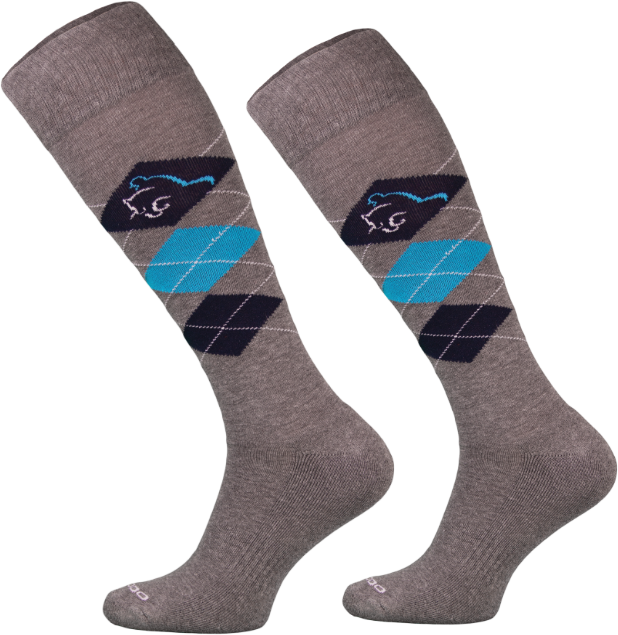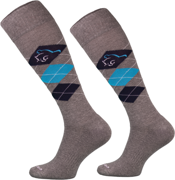 Podkolanówki jeździeckie w klasyczne wzór kolorowych rombów.