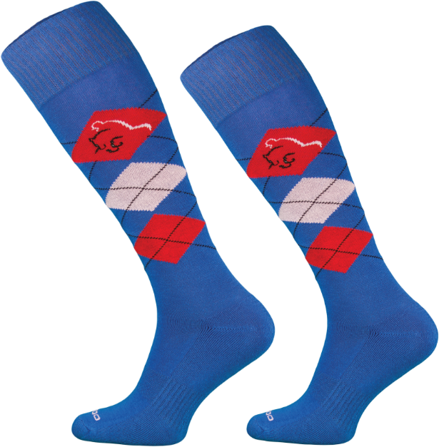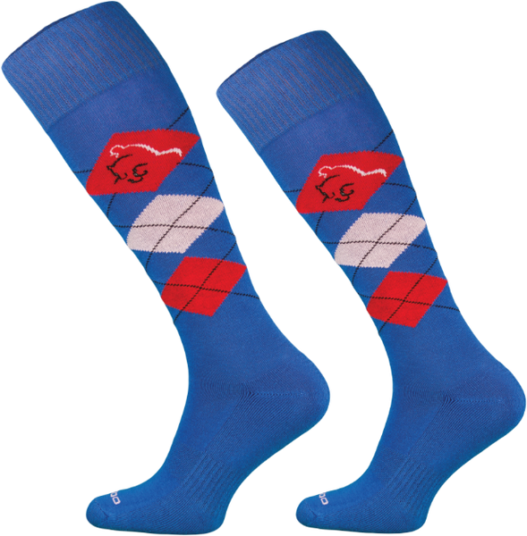 Podkolanówki jeździeckie w klasyczne wzór kolorowych rombów.