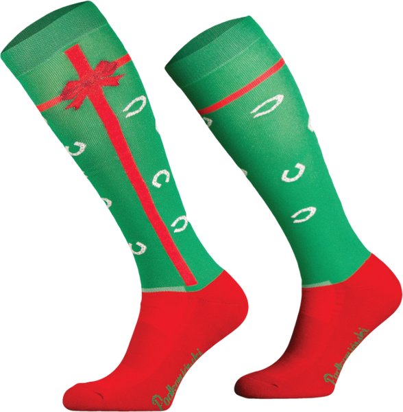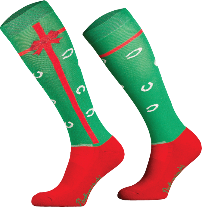- Fantazyjne bawełniane skarpety przeznaczone do jazdy konnej.