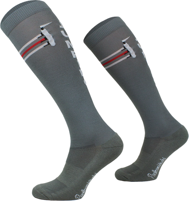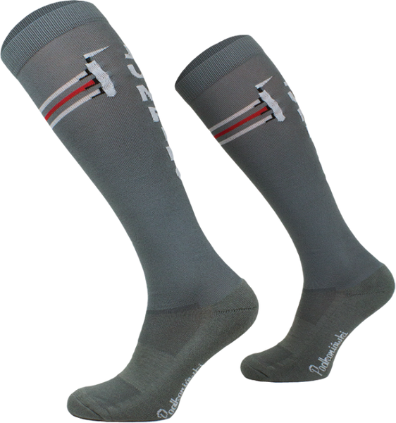 - Fantazyjne bawełniane skarpety przeznaczone do jazdy konnej.