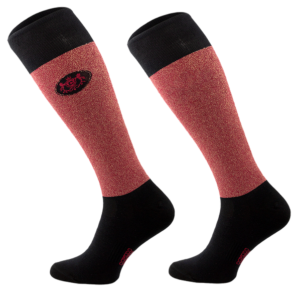 Podkolanówki jeździeckie, które są nie tylko funkcjonalne, ale również stylowe, dzięki dodatkowi włókien lurex, które dodają im błysku.