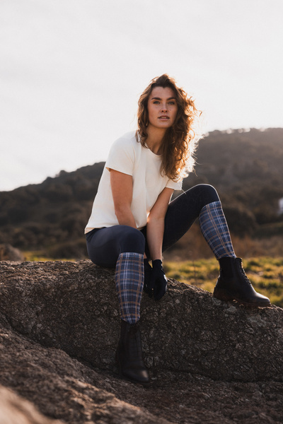 Modny nadruk w kratę na górnej części skarpetek nadaje im nowoczesny, sportowy wygląd.