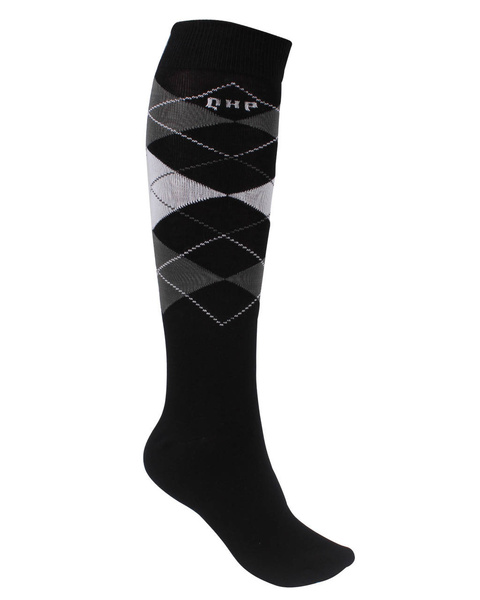 - Podkolanówki jeździeckie z klasycznym wzorem w kratkę.