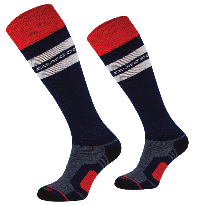 Płaskie szwy w okolicy palców poprawiają wygodę użytkowania, eliminując ryzyko otarć i podrażnień. Góra podkolanówek została wzmocniona podwójnym ściągaczem, który utrzymuje skarpetę w miejscu, zapewniając stabilność i pewność podczas każdego ruchu.