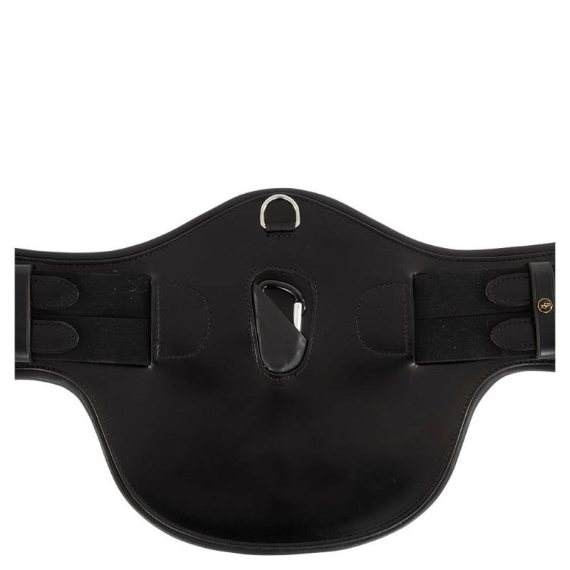 Posiada elastyczne wstawki na obu końcach, centralny D-ring i karabińczyk do ewentualnego mocowania wodzy.
