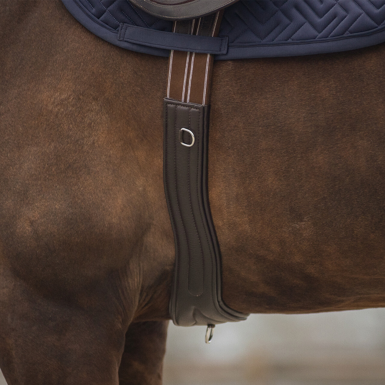 Wewnętrzna strona popręgu została miękko wyściełana wysokiej jakości skórą, która gwarantuje doskonałą miękkość w kontakcie ze skórą konia, zapobiegając podrażnieniom i otarciom.