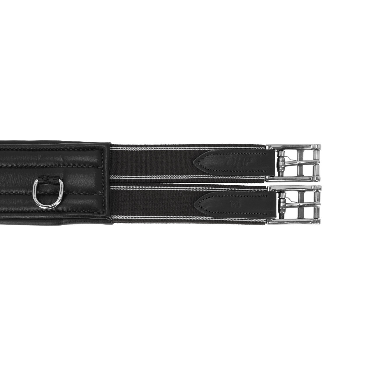 Zastosowane elastyczne wstawki gumowe po obu stronach pozwalają na równomierne dopięcie popręgu bez nadmiernego napięcia, co przekłada się na większy komfort konia i ułatwia dopasowanie niezależnie od stopnia napięcia mięśni.