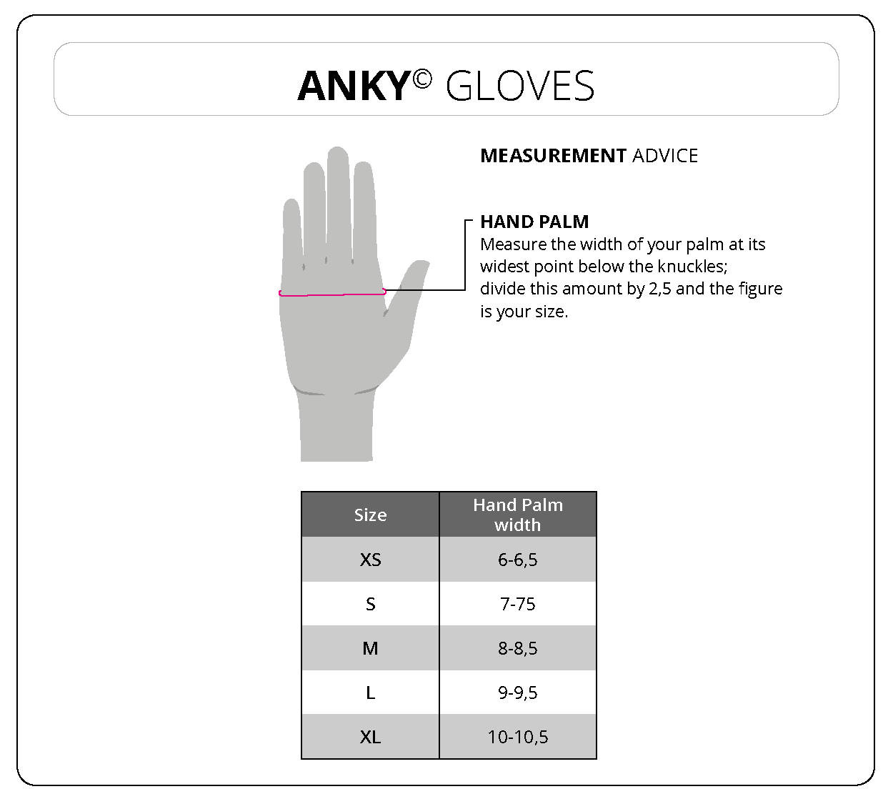 Dłoń mierzy się w najszerszym miejscu, na kostkach palców, lekko po skosie.