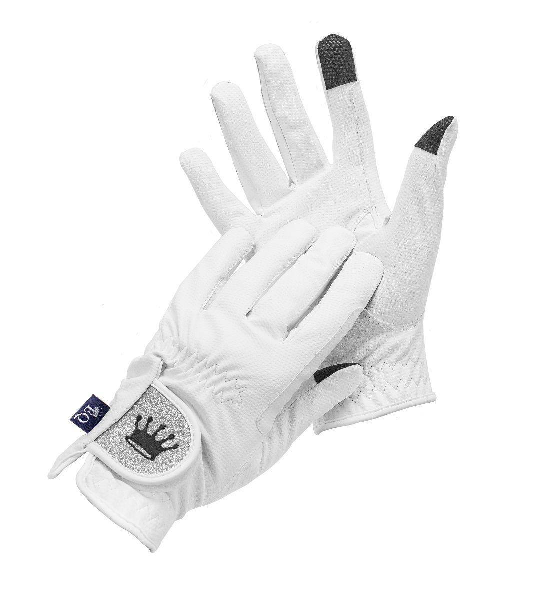 Eleganckie rękawiczki wykonane z antypoślizgowego materiału. Na rzepie posiadają haft korony na brokatowym tle.