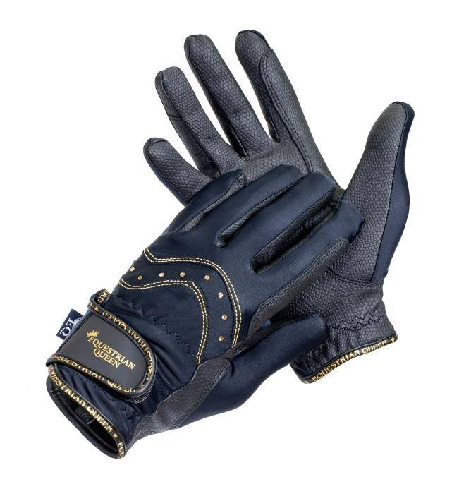 Eleganckie rękawiczki wykonane z materiałów wysokiej jakości. Zdobione kontrastową, złotą nitką i kryształkami.