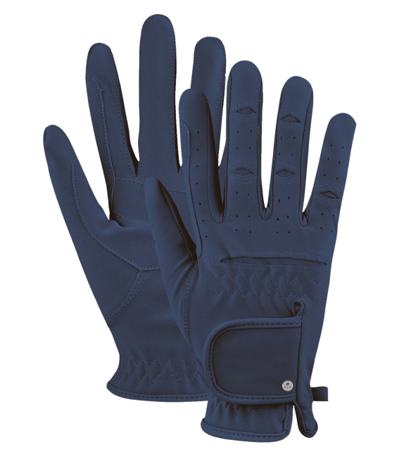 • Wytrzymałe rękawiczki jeździeckie, wykonane z materiału przypominającego zamsz.