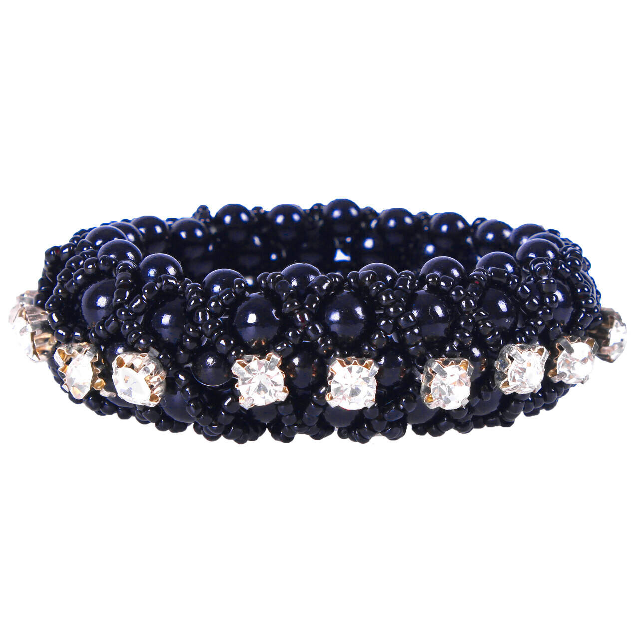 - Gumka do włosów ozdobiona koralikami w różnych rozmiarach, przeplatanymi dużymi srebrnymi kryształkami.