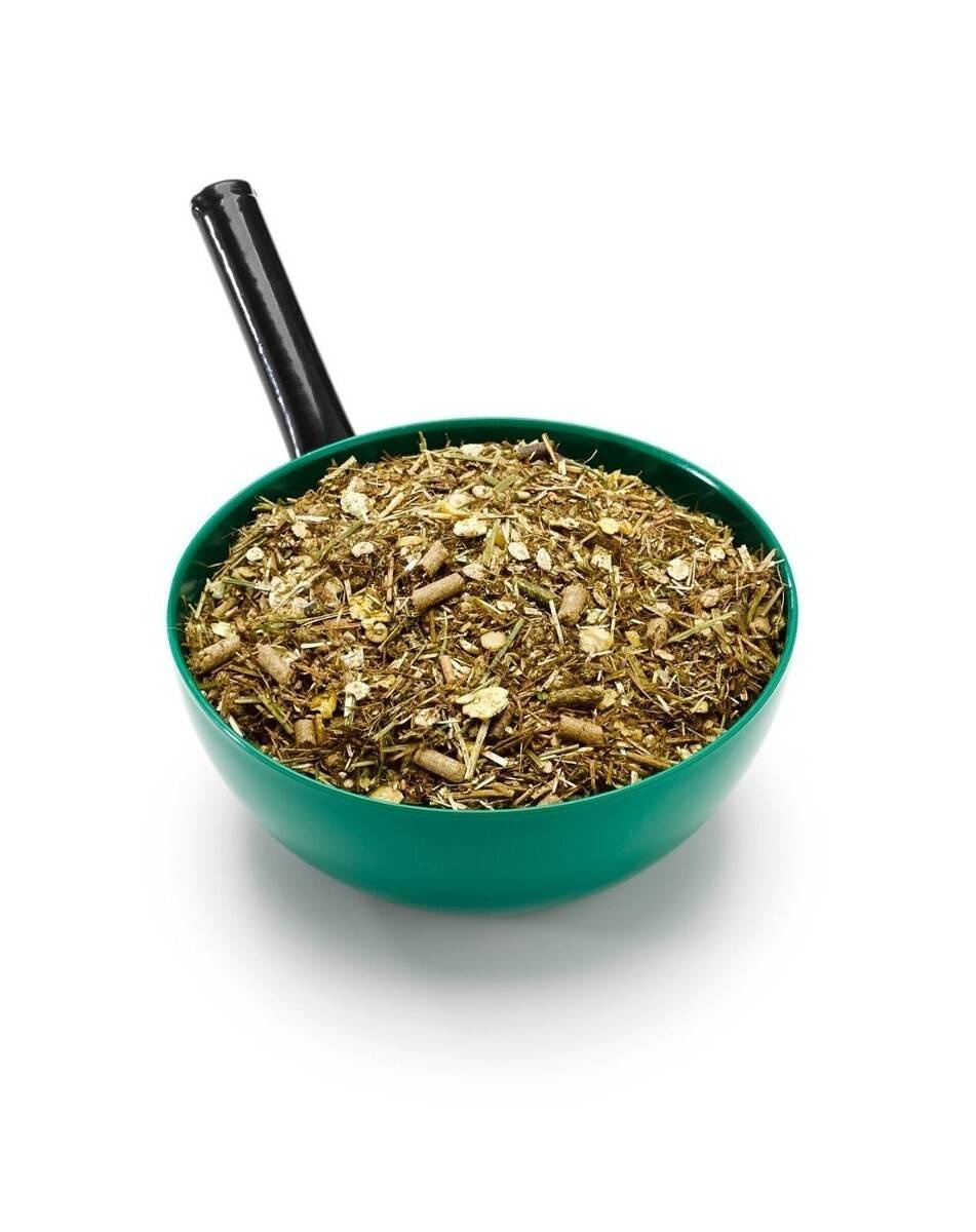 To wyjątkowa mieszanka wysokostrawnych włóknistych składników, ziół i witamin. Zawiera 9 rodzajów ziół w tym algi, kwiat róży, pokrzywę, czosnek i żywokost, które mają za zadanie poprawić apetyt, trawienie, oddychanie i procesy zdrowienia organizmu. Dedykowana koniom