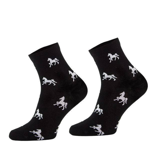- Bawełniane krótkie skarpetki ozdobione motywem koników.