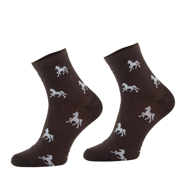• Bawełniane krótkie skarpetki ozdobione motywem koników.