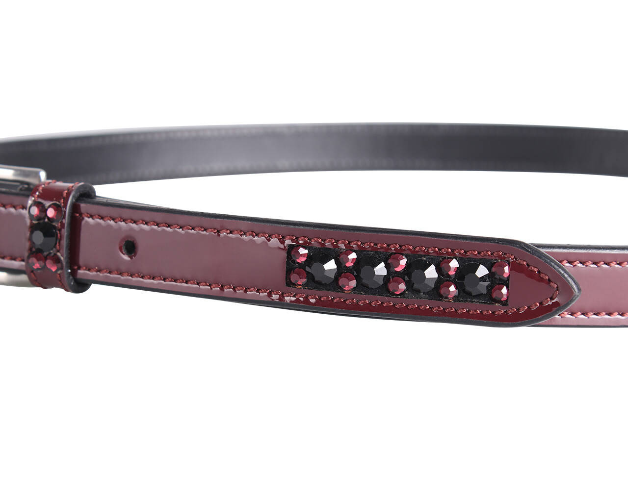 • Pasek wykonany ze skóry lakierowanej. Ozdobiony jest kryształami STELLUX™ , które odbijają światło, zapewniając piękny połysk.