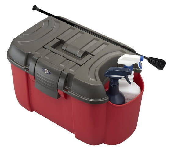 Skrzynka jeździecka z dodatkową przegrodą na np. preparaty w butelkach.
