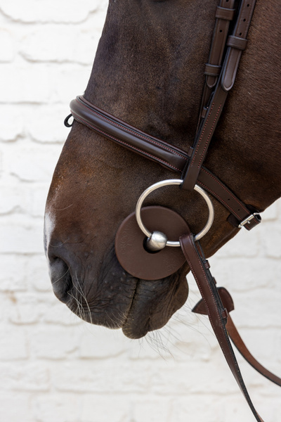 Osłonki są bardzo łatwe w montażu – wystarczy je delikatnie rozciągnąć i nasunąć na pierścienie wędzidła. Dzięki elastyczności pasują do większości standardowych rozmiarów wędzideł.