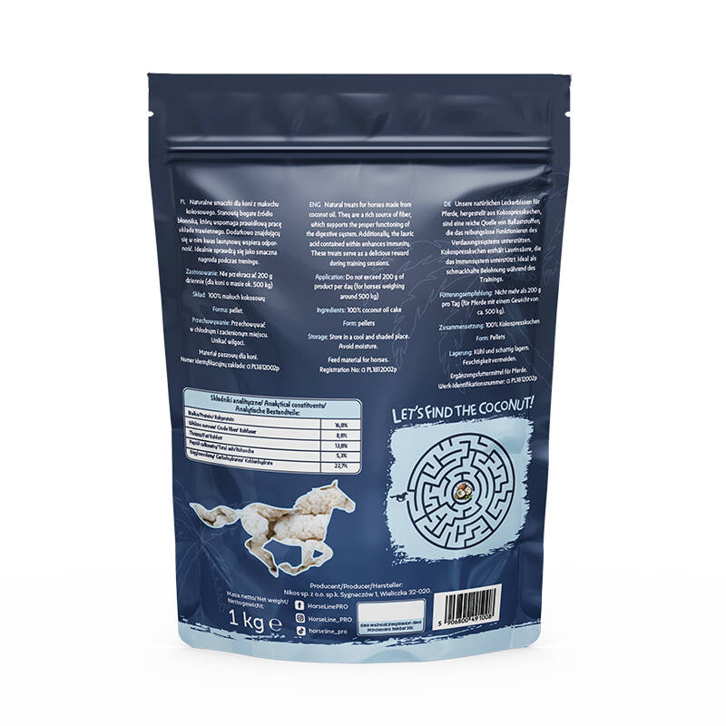 Naturalne smaczki dla koni z makuchu kokosowego.