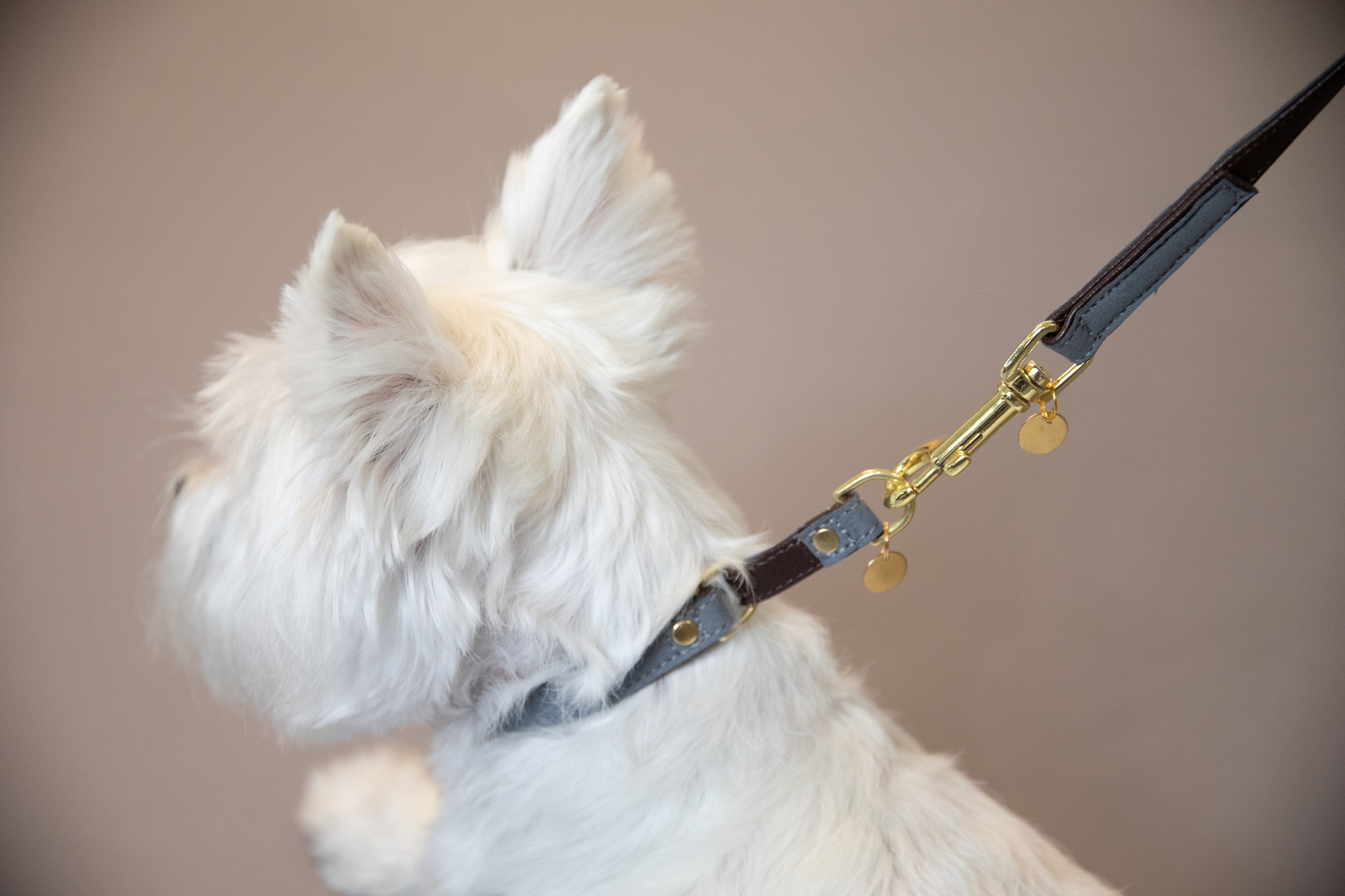 Niezwykle elegancka smycz z wierzchu pokryta miękką mikrofibrą o aksamitnym wyglądzie.