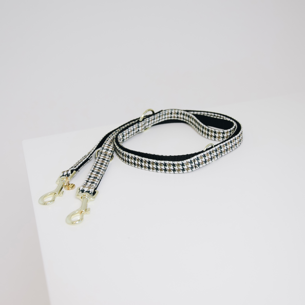 Niezwykle elegancka smycz wykonana z bardzo miękkiej tkaniny w modną pepitkę.