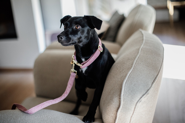 - Niezwykle elegancka smycz wykonana z bardzo miękkiej tkaniny przypominającej wełnę na zewnątrz.